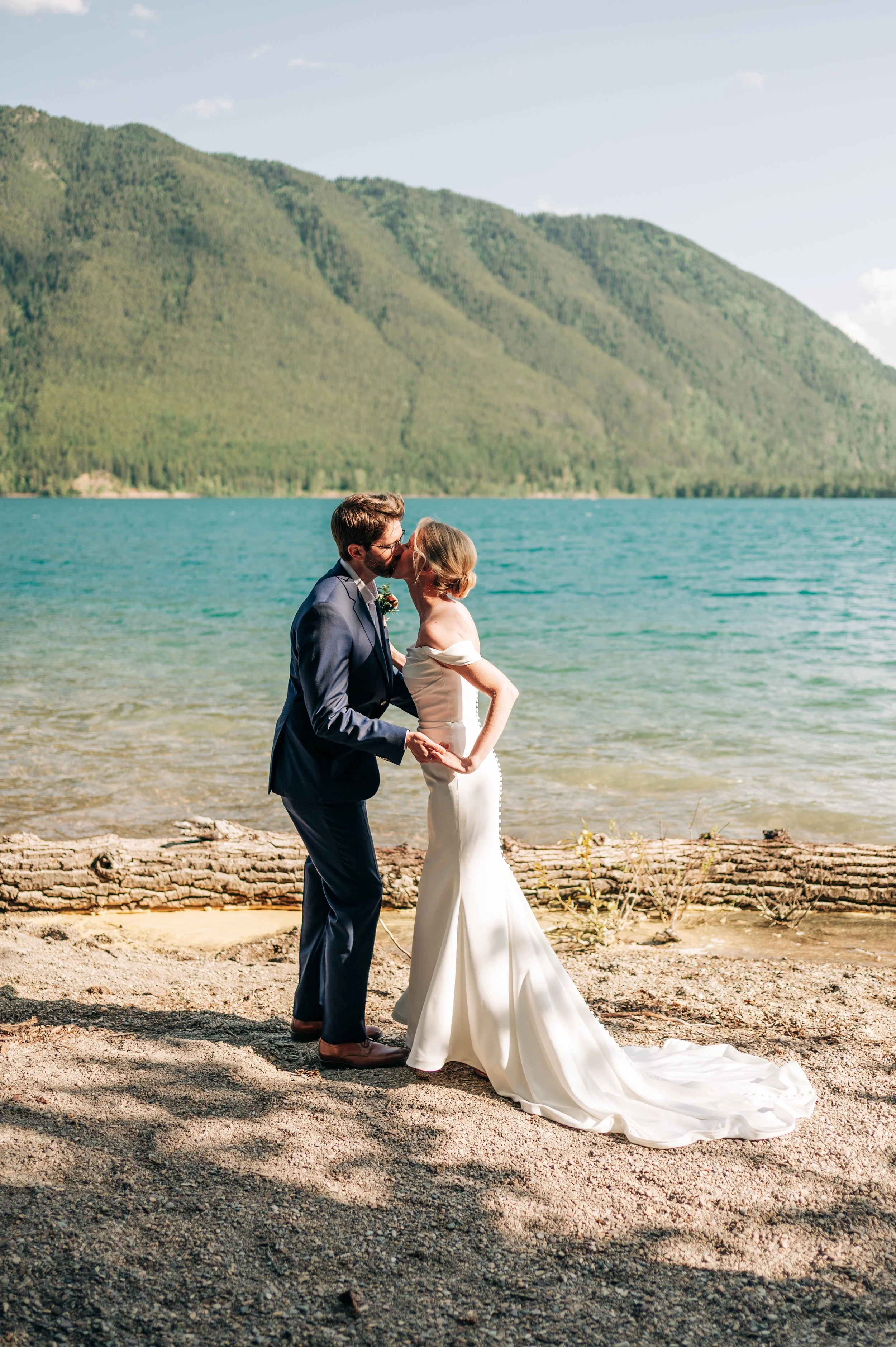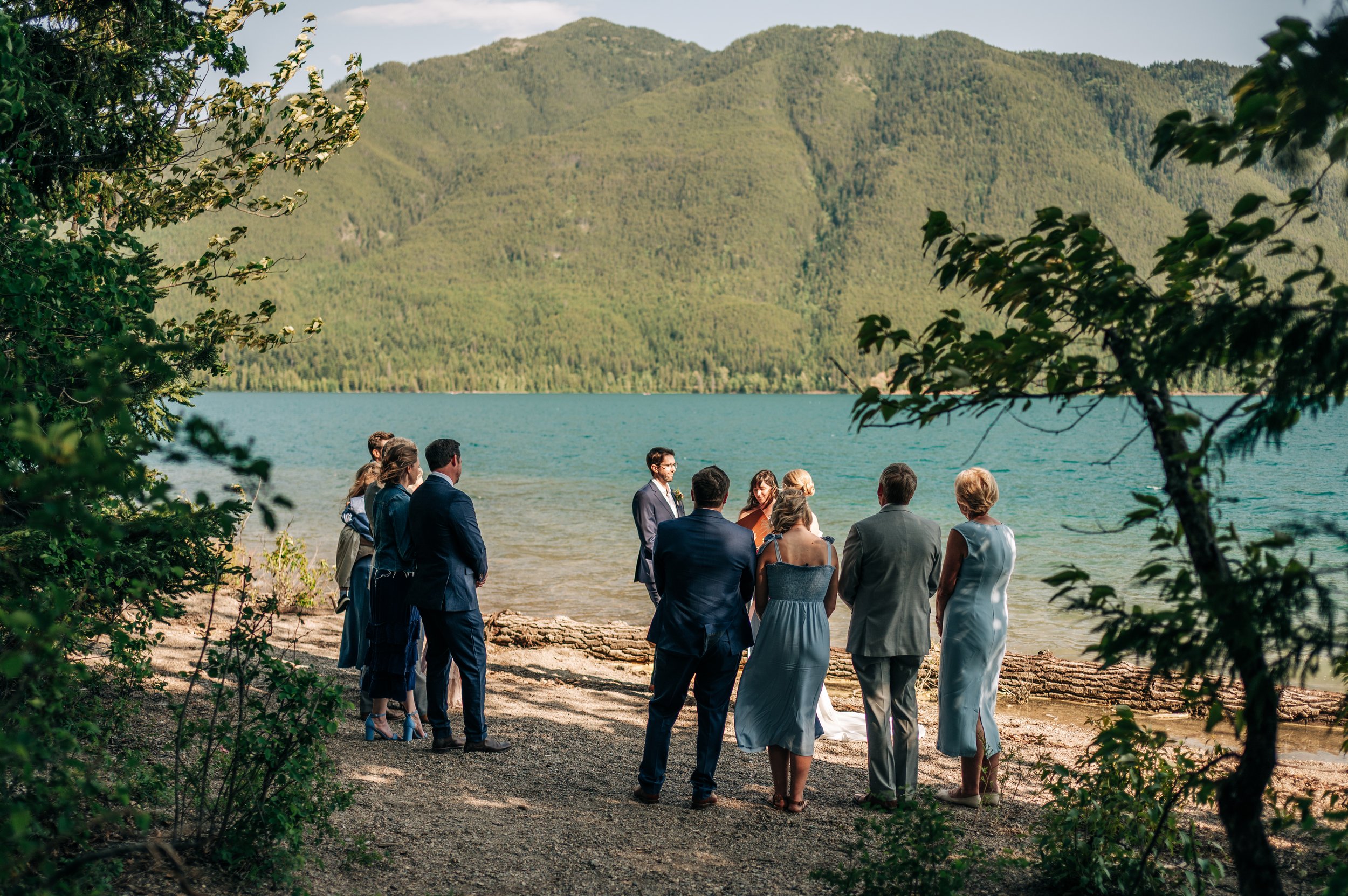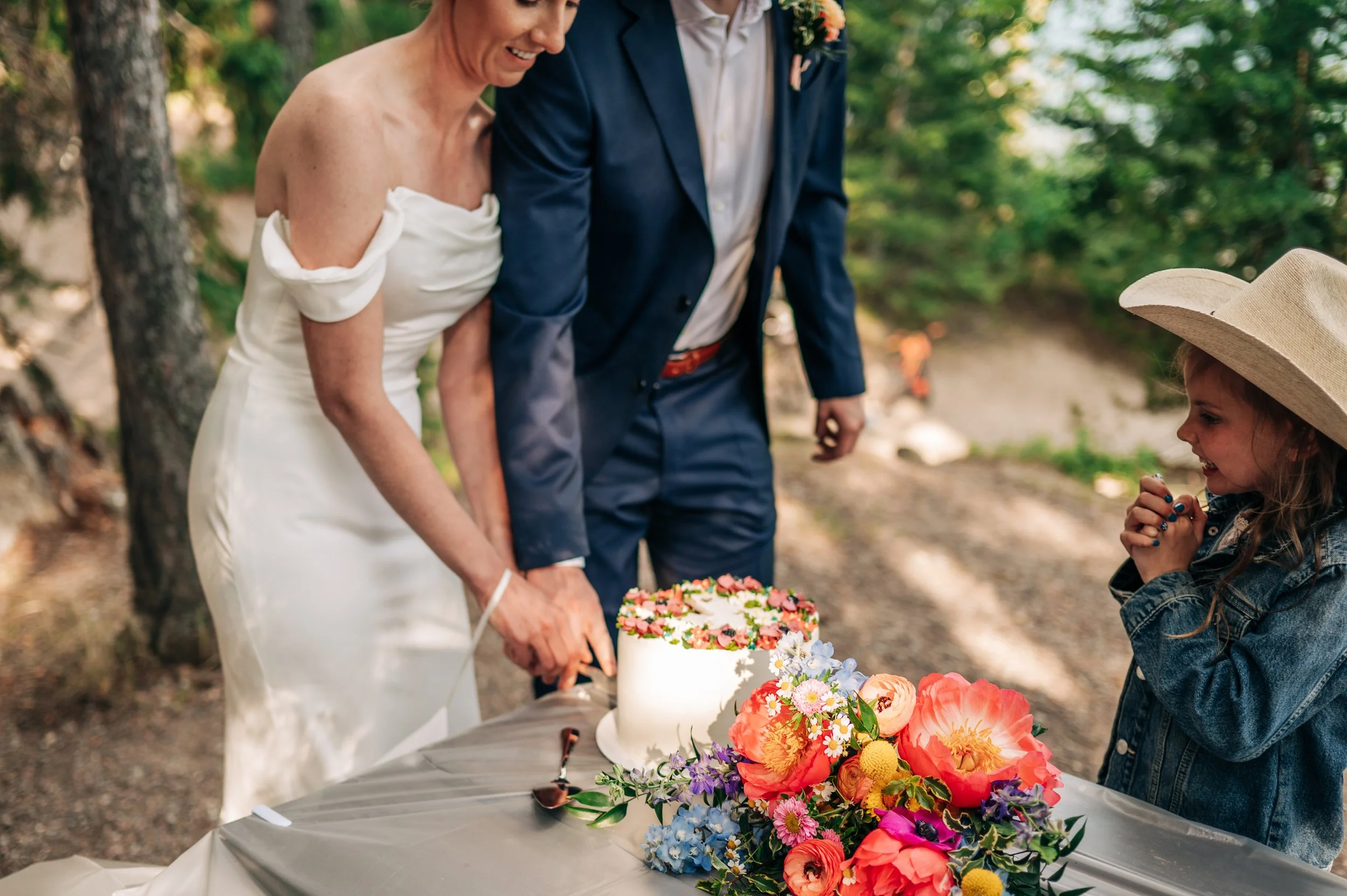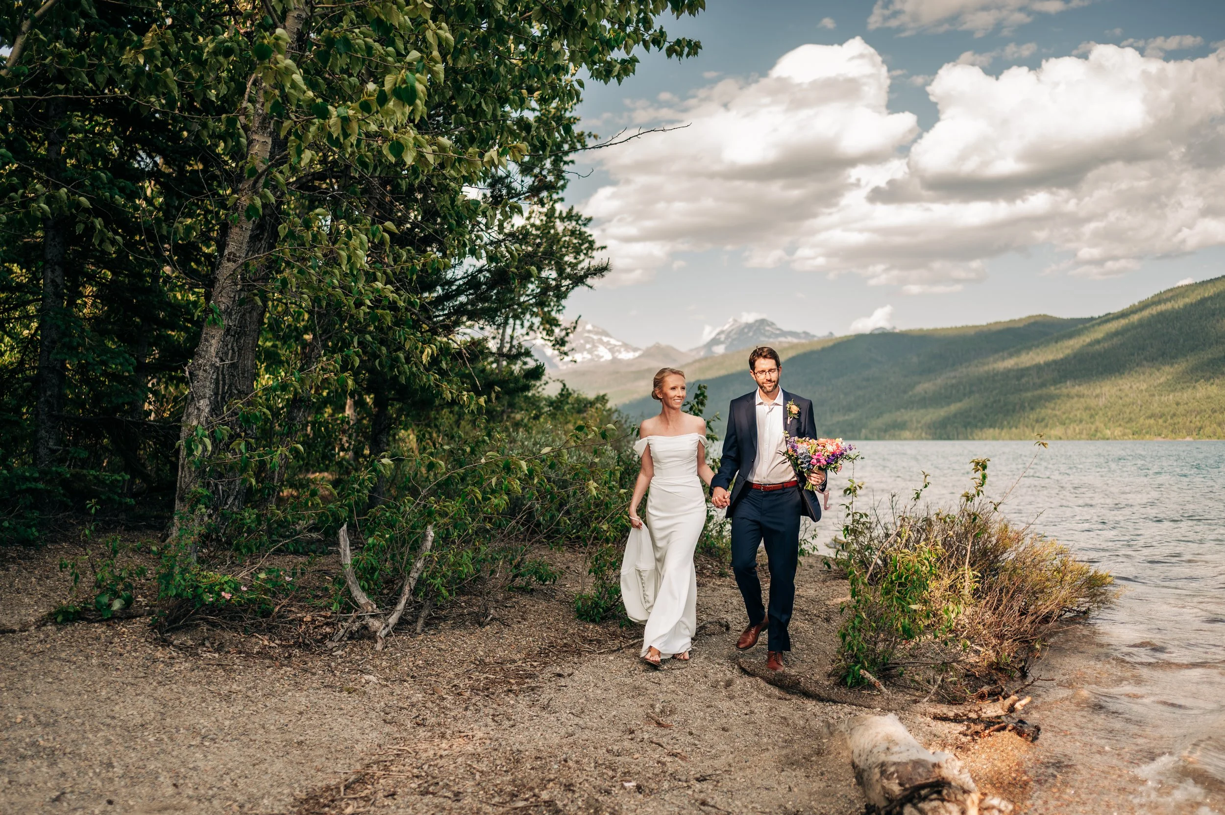 Jenn and the group caravanned together into Glacier for their ceremony, where sunshine, warm temperatures, and a soft mountain breeze set the tone for a perfectly relaxed celebration. Lake McDonald’s water was that unreal Glacier blue that never disappoints. After exchanging vows, everyone gathered at a nearby day-use area for cake, laughter, and plenty of celebrating with family. It was simple, sweet, and exactly how an elopement should feel.