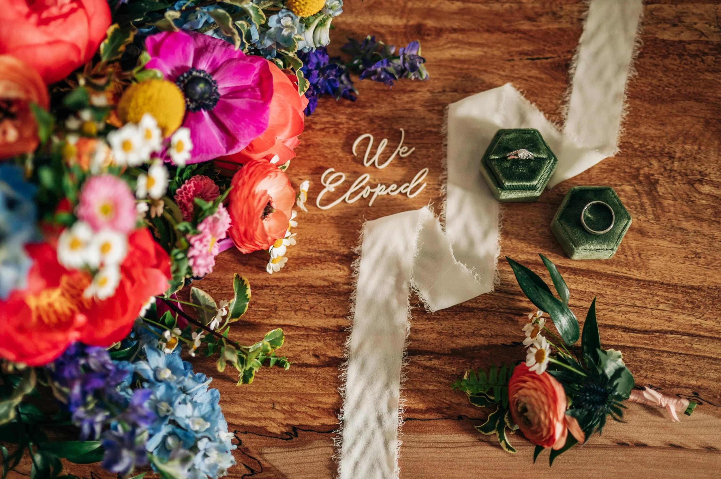 Once the family time wrapped up, Jessica and Michael snuck away for portraits along Going-to-the-Sun Road. Her brightly colored, playful florals popped beautifully against the scenery. A laid-back day, full hearts, and stunning views; this one was a true summer dream.